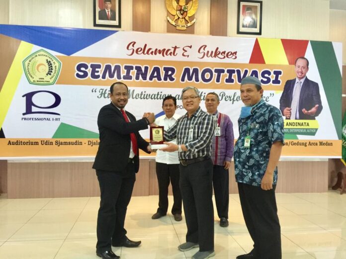 Kegiatan yang digagas oleh LPM UMN Al Washliyah ini dibuka oleh Rektor Dr KRT H Hardi Mulyono Surbakti diwakili Wakil Rektor (WR) 2 Dr H Ridwanto. Hadir juga WR 1 Dr H Firmansyah, WR 3 Dr Anwar Sadat. Sebagai narasumber Yoffi Andinata yang membawakan materi High Motivation and High Performance”.