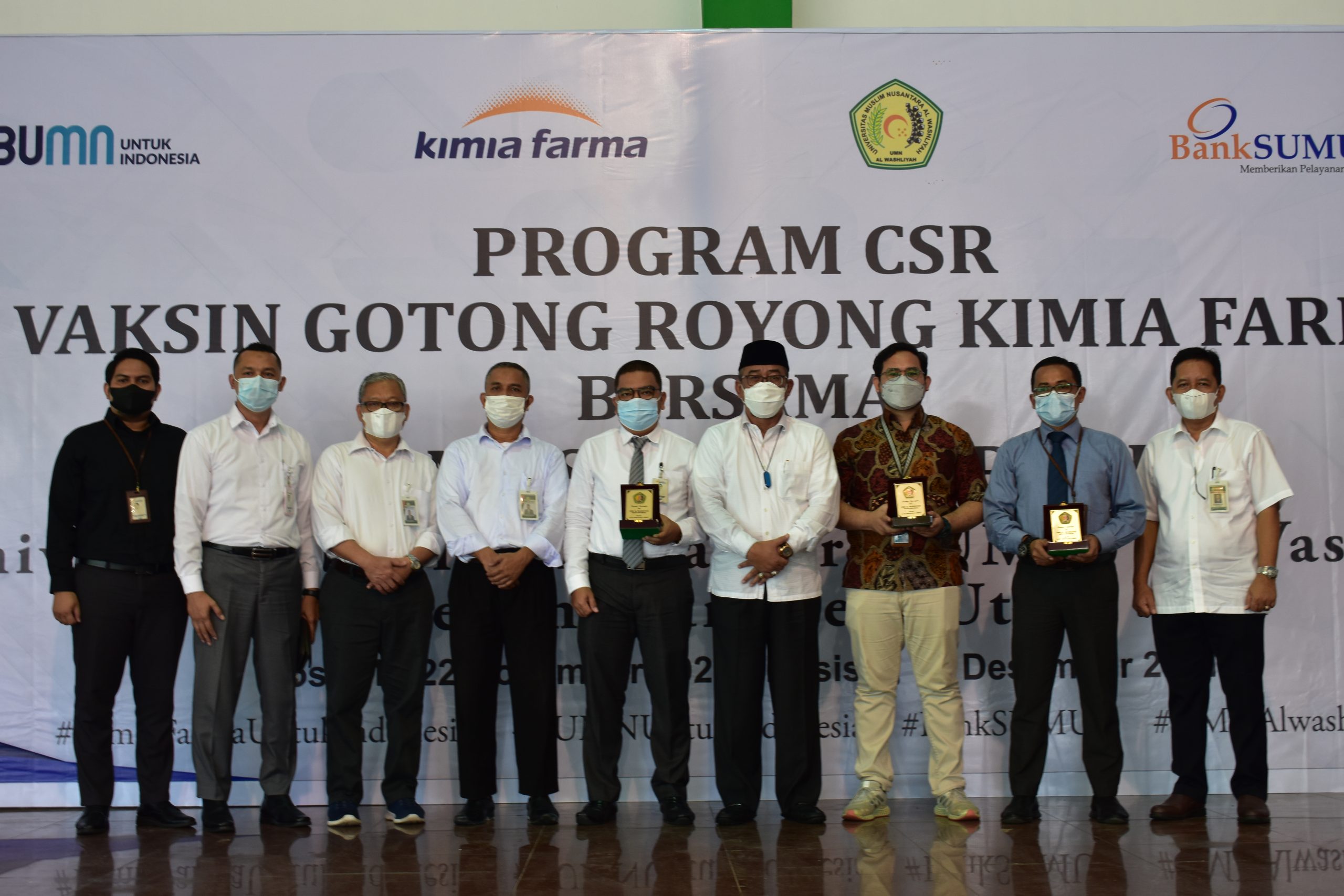 Vaksinasi ini terselnggara berkat program CSR Vaksin Gotong Royong Kimia Farma bersama Bank Sumut Syariah dan UMN Al Washliyah Medan untuk dosis. Pelaksanaan dosis kedua akan dilakukan pada Desember mendatang.