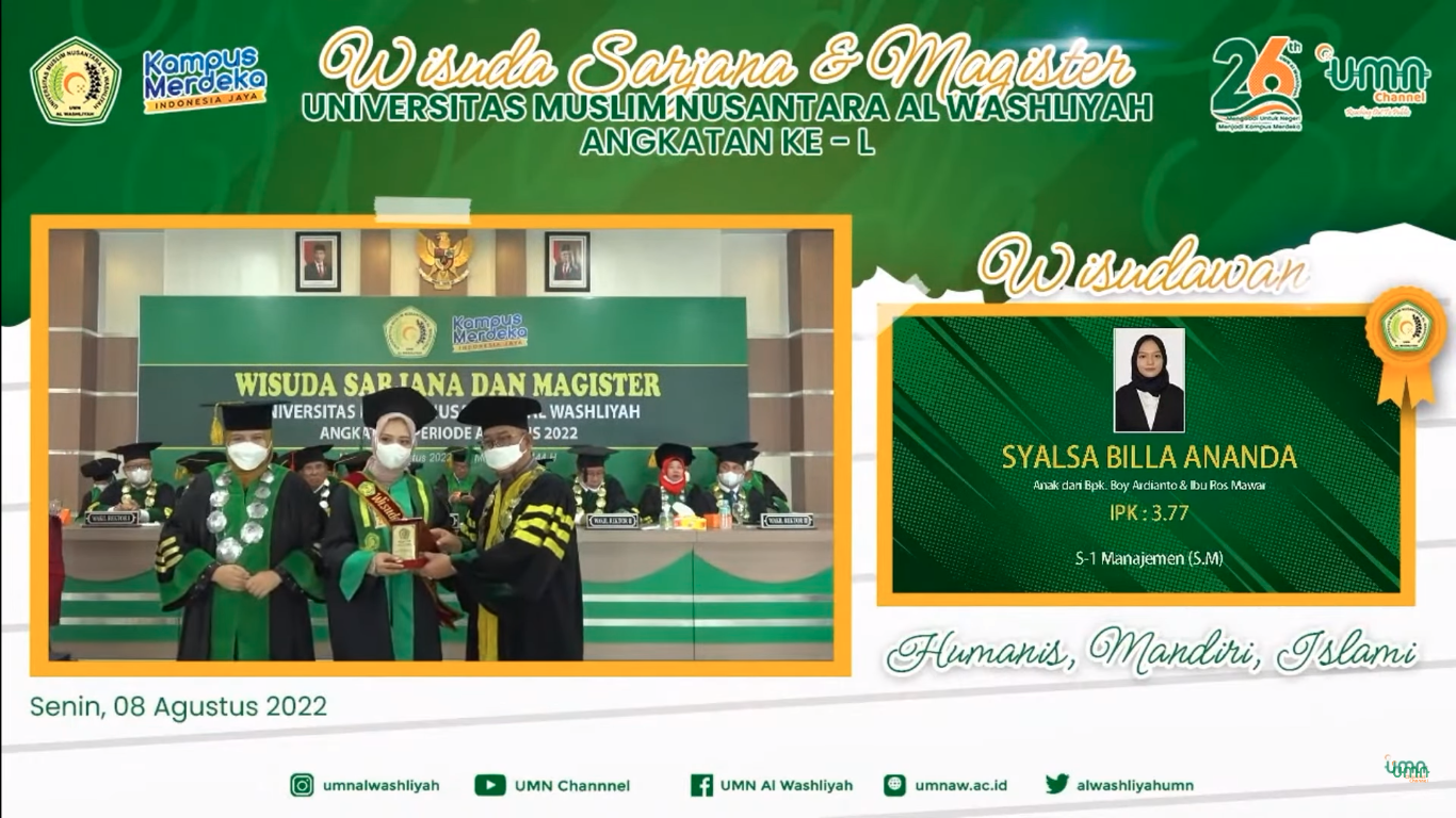 Wisuda umn al washliyah ke 50 ini juga dapat disaksikan oleh orang tua atau wali wisudawan melalui live streaming di youtube umn channel. Mengingat orang tua atau wali wisudawan tidak dapat hadir secara langsung di auditorium.