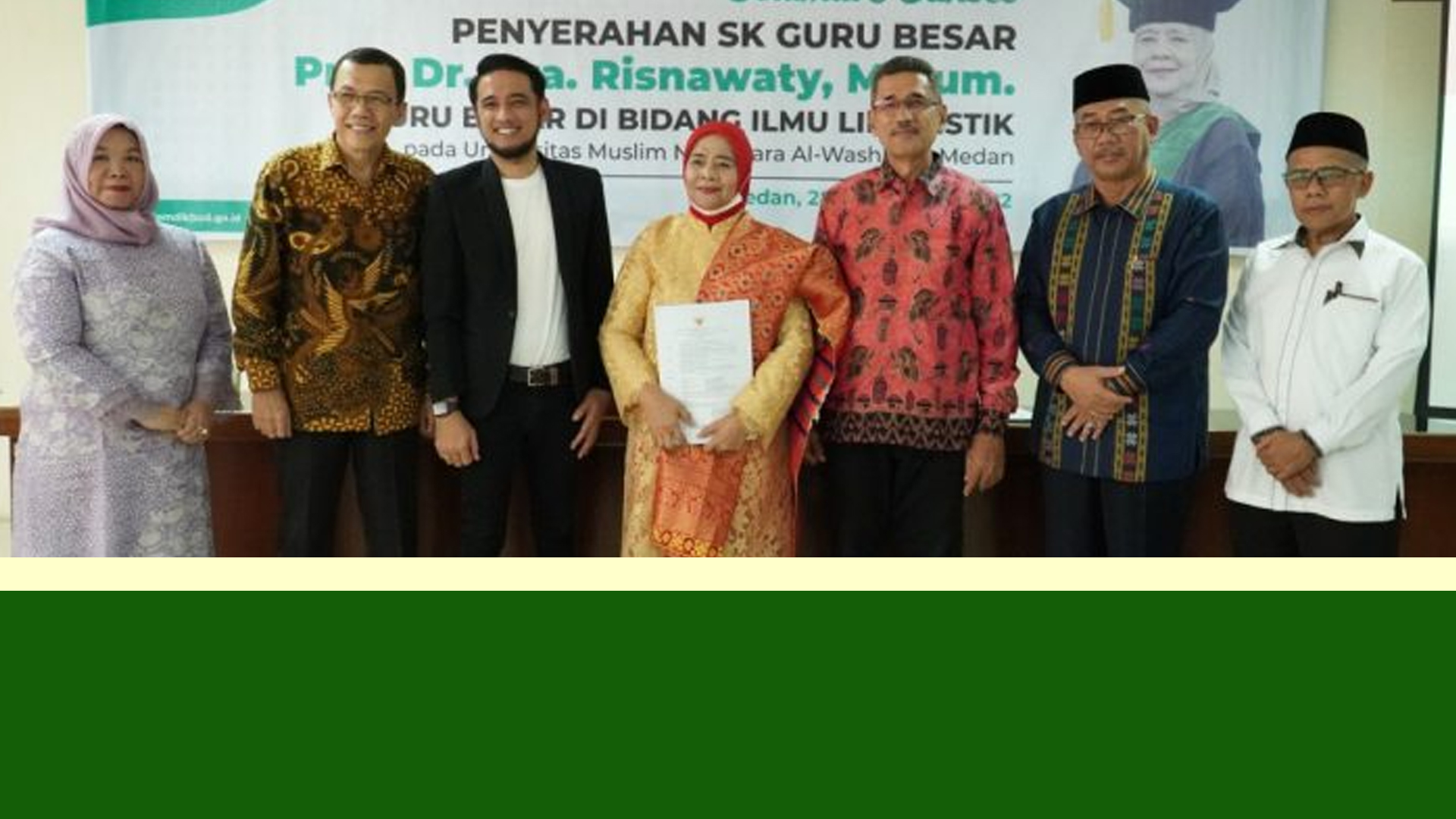 Telah dilaksanakan acara penyerahan sk guru besar kepada salah satu dosen di umn al washliyah, yaitu ibu prof. Dr. Risnawaty, m.hum di aula kantor lldikti wilayah i sumatera utara pada rabu (28/9). Pada kesempatan ini sk diserahkan secara langsung oleh plt. Ka. LLDIKTI Wilayah I sumatera utara, bapak prof. Dr. Ibnu hajar, M.Si.