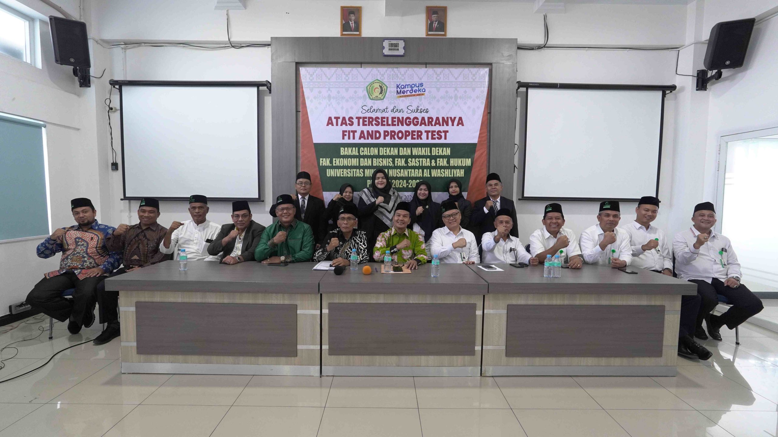 Universitas Muslim Nusantara (UMN) Al Washliyah melaksanakan Fit and Proper Test untuk Calon Dekan dan Wakil Dekan dari 3 Fakultas, yaitu Fakultas Ekonomi dan Bisnis (FEB), Fakultas Sastra serta Fakultas Hukum periode 2024-2028. Kegiatan ini berlangsung di Kampus Syeikh H. Muhammad Yunus, UMN Al Washliyah (28/10).
