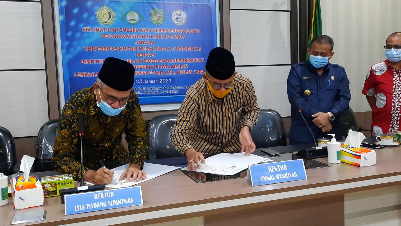 Rektor Universitas Muslim Nusantara (UMN) Al Washliyah Dr KRT H Hardi Mulyono K Surbakti, Kamis (28/1/2021), melakukan kerjasama MoU dan MoA dengan 3 instansi pemerintah dan swasta. Keempat instansi tersebut adalah Institut Agama Islam Negeri (IAIN) Padangsidimpuan yang dihadiri rektor …