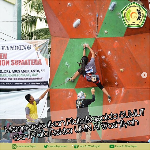 Wall Climbing Competition . Memperebutkan Piala Kapolda Sumut dan Piala Rektor UMN Al Washliyah . Menumbuhkan Semangat Berprestasi Panjat Tebing Dikalangan Pemuda Demi Kejayaan Bangsa di Masa Depan